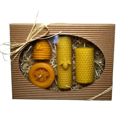 - Dárkový balíček motaných a litých svíček z včelího vosku